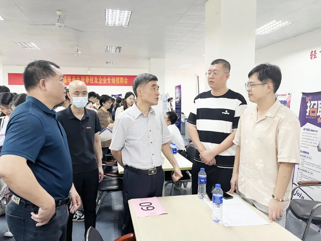 校领导游小波、林树生莅临现场指导工作,了解校友企业的发展情况、招聘需求,对提供就业岗位的校友企业表示欢迎和感谢,同时也鼓励毕业生抓住契机,寻找机遇,积极投递简历,找到适合自己的工作岗位。