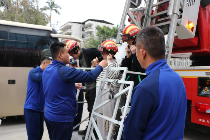 九游(NineGame)官方网站消防宣讲员现场体验乘坐救援云梯