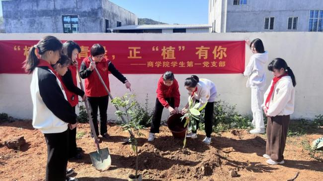 商学院学生第一党支部赴南安市兰田小学开展“‘植’此青绿,正‘植’有你”主题党日活动,党支部党员师生、兰田村村委、兰田小学师生代表30余人参加活动。商学院师生以实际行动弘扬植绿、爱绿、护绿的文明新风,为初春增爱添绿。