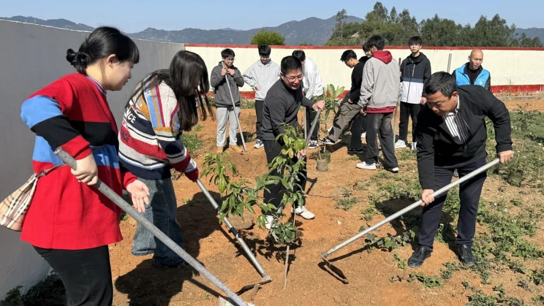 生命科学与化学学院团委联合泉州市心愿青年志愿者服务队前往南安市洪濑镇杨美村开展“春‘锋’十里,共‘树’未来”主题植树活动。活动现场,大家分工明确,配合默契,挥锹铲土、扶苗填坑、夯土浇水。经过大家的共同努力,约100棵紫花风铃木树苗迎风挺立,焕发勃勃生机。