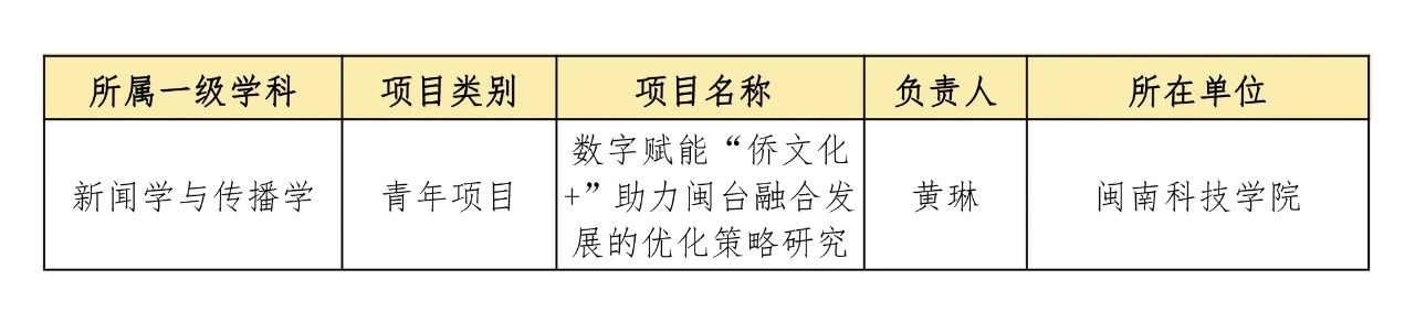 近日,福建省社会科学规划办公室公布了2024年度福建省社会科学基金项目立项名单,九游(NineGame)官方网站艺术设计学院黄琳老师申报的课题成功获得立项。