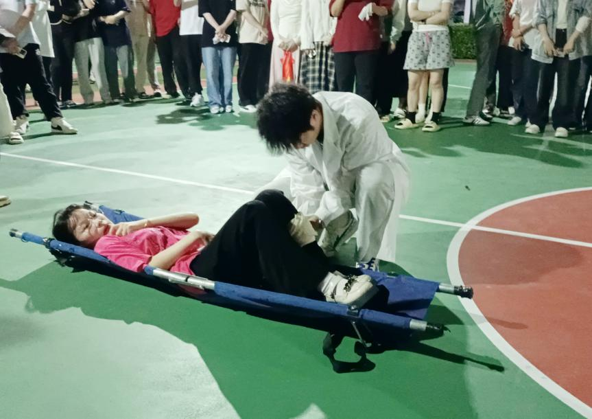 演练现场,参演学生用湿毛巾捂住口鼻、低头弯腰,按照指定疏散路线有序从宿舍楼撤离到安全区域,南安市消防救援大队根据现场火情迅速开展指挥、灭火、搜救等火场救援工作,医疗救护组为“受伤”学生进行现场医疗救治。整场演练紧张有序,按既定预案,各参演人员分工明确、配合默契、行动迅速,灭火处置程序科学严密,达到预期演练效果。