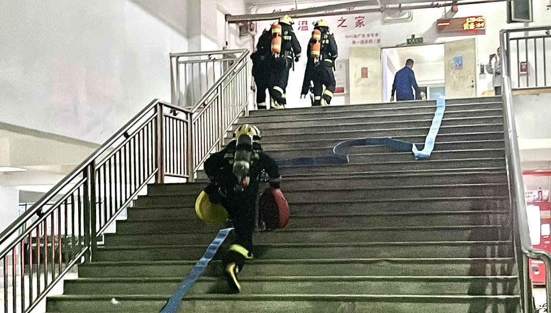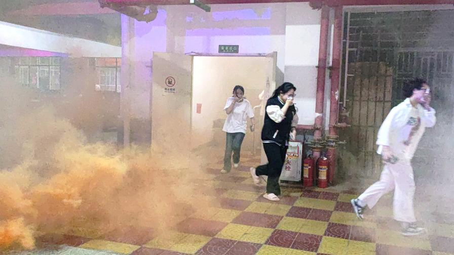 此次演练模拟学生在校住宿期间,宿舍熄灯断电后未及时关闭电吹风开关,次日凌晨宿舍恢复供电后,电吹风持续工作自燃引发火灾,保安巡逻发现火情,第一时间组织学生疏散避险,并拨打“119”报警。