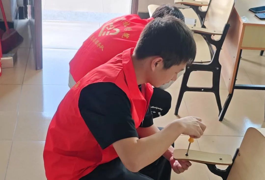 光电信息学院学生维修教室桌椅志愿服务,践行雷锋精神