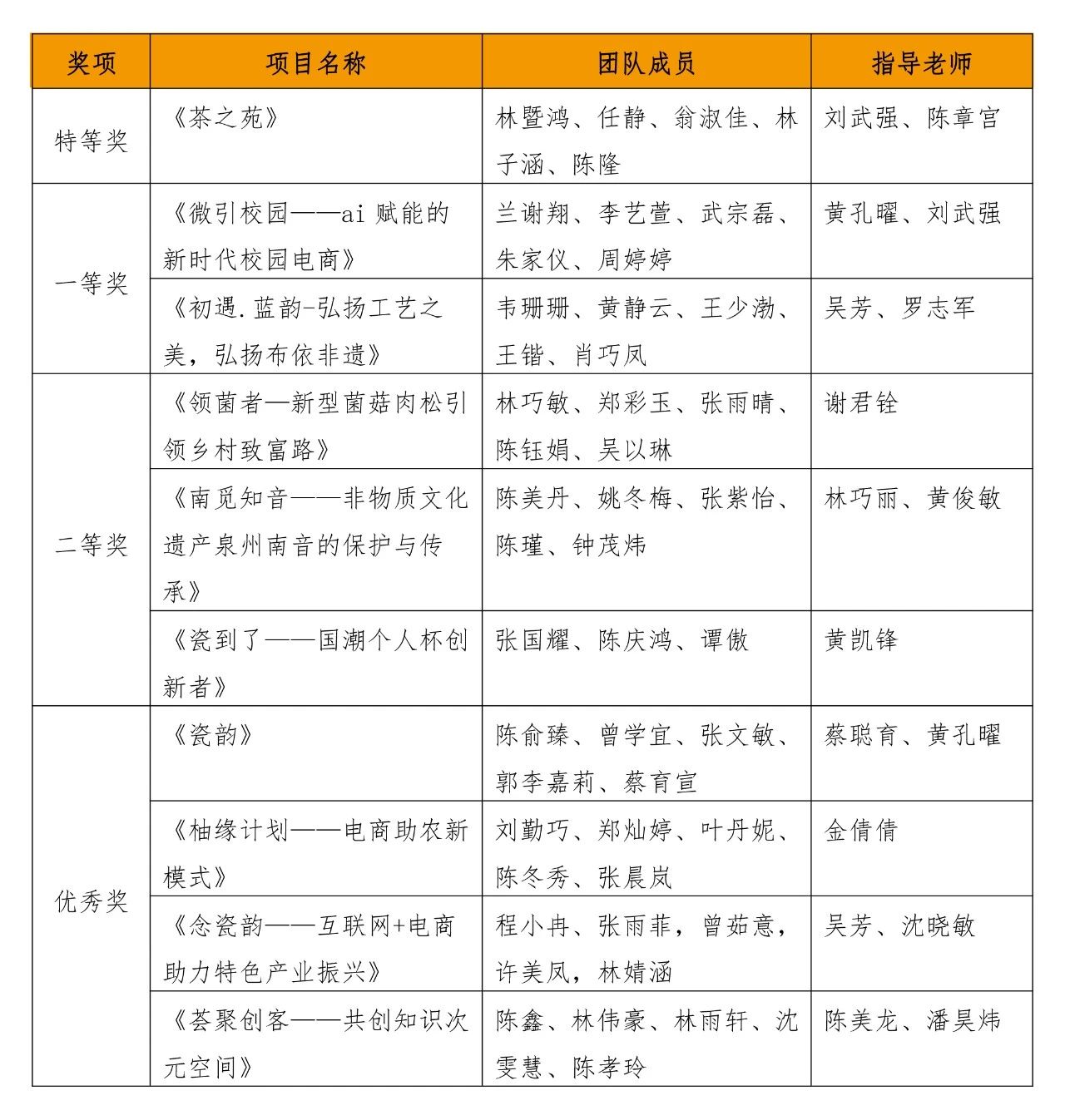 第十四届全国大学生电子商务“创新、创意及创业”校赛决赛获奖名单